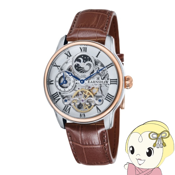 EARNSHAW アーンショウ メンズ腕時計 ES-8006-02 LONGITUDE FINE BROWN 自動巻き スケルトン 革ベルト 44mm 国内正規品