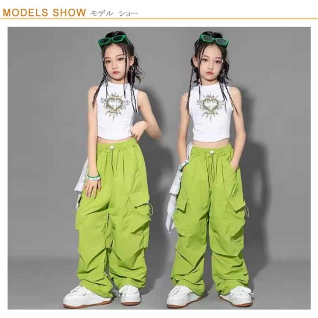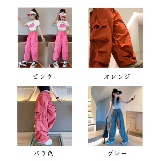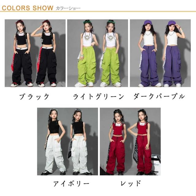 レディース ストリート ダンス ガールズ パープル ジュニア グリーン 衣装 ズボン ブラック カーゴパンツ レッド ヒップホップ グレー hiphop kpop 全13色 かっこいい ダンス衣装 練習着 レッスン着 発表会 ピンク 韓国 キッズ 子供 女の子 男の子 可愛い