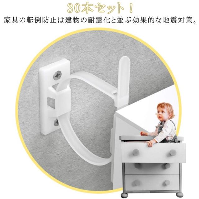 30本セット!家具 転倒防止 地震対策 防炎対策 耐震ベルト 耐震ストッパー 耐震グッズ 落下防止ベルト 子供 安全 ストラップ 家具ストラップ 家具アンカー ウォールアンカー ベビープルーフ 防災グッズ テレビ パソコン 冷蔵庫 本棚 キャビネット ドレッサー 長さ調整