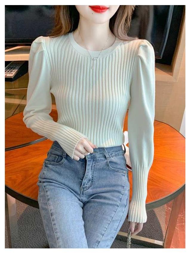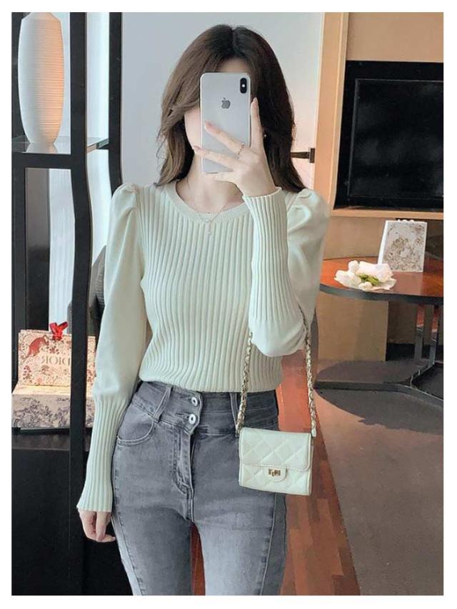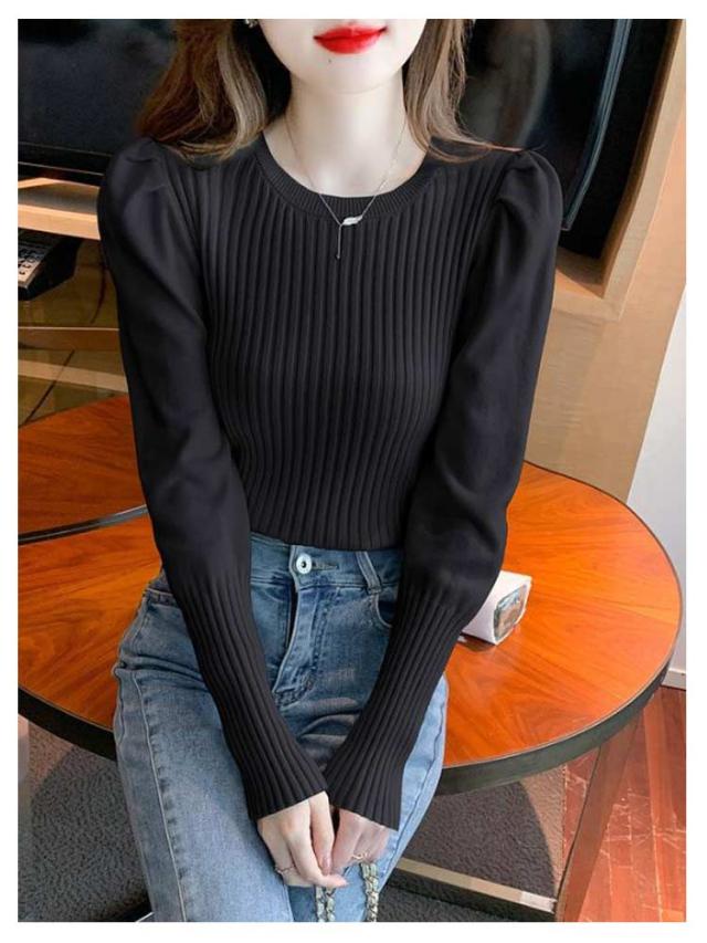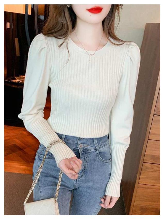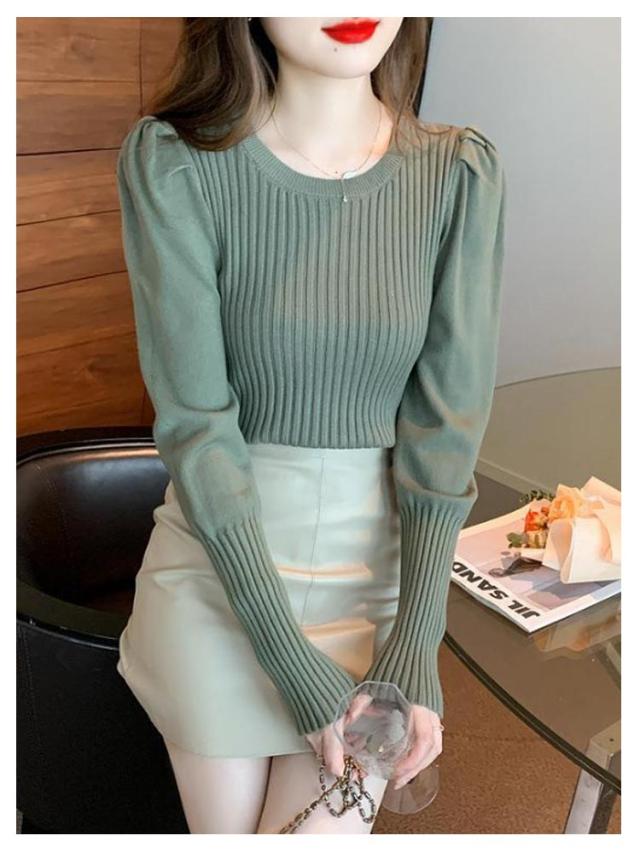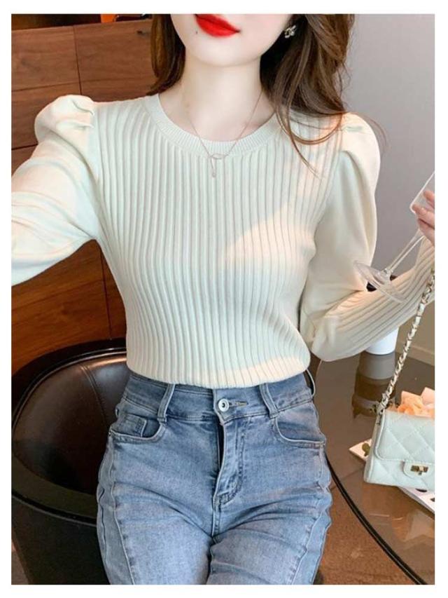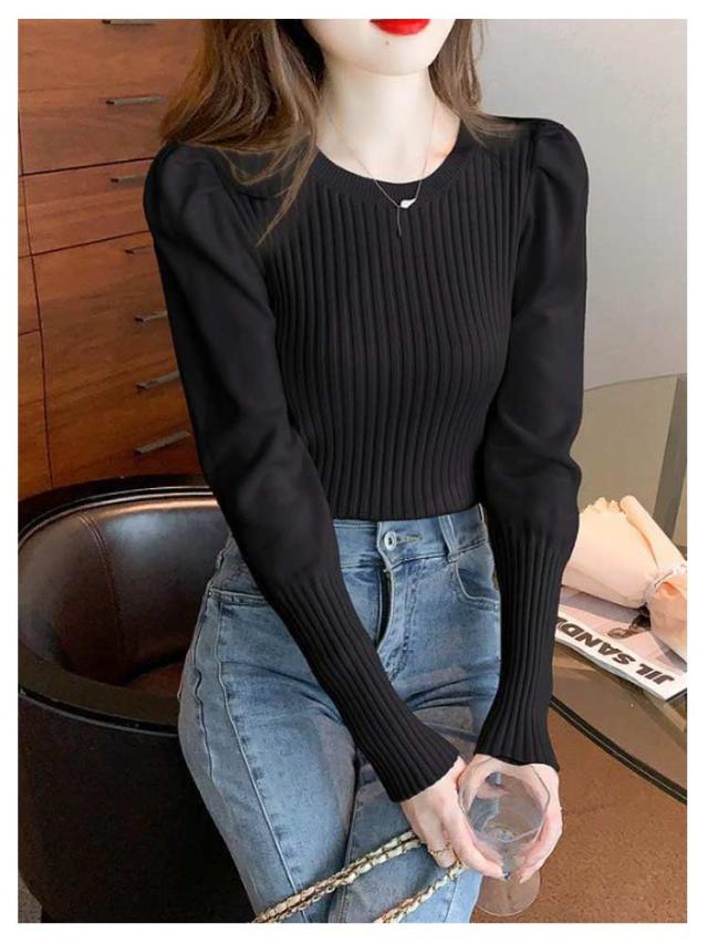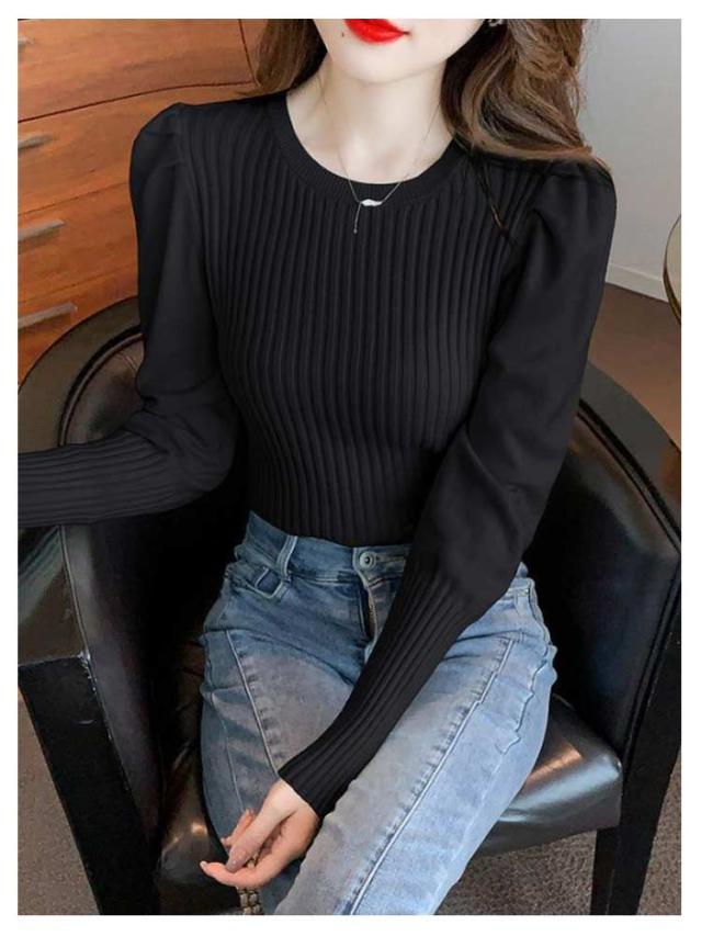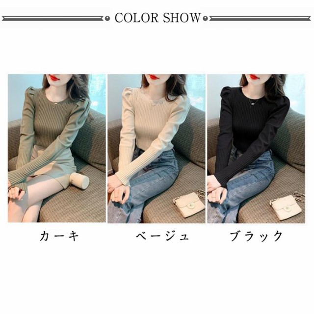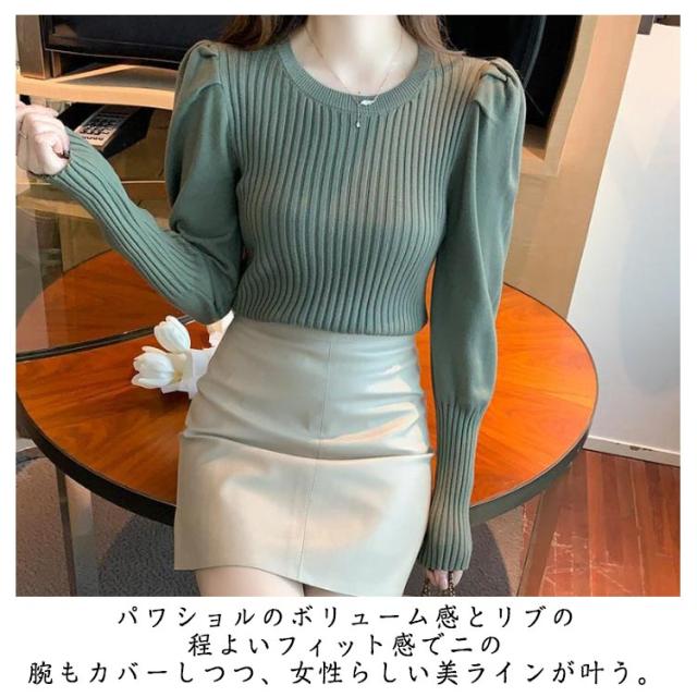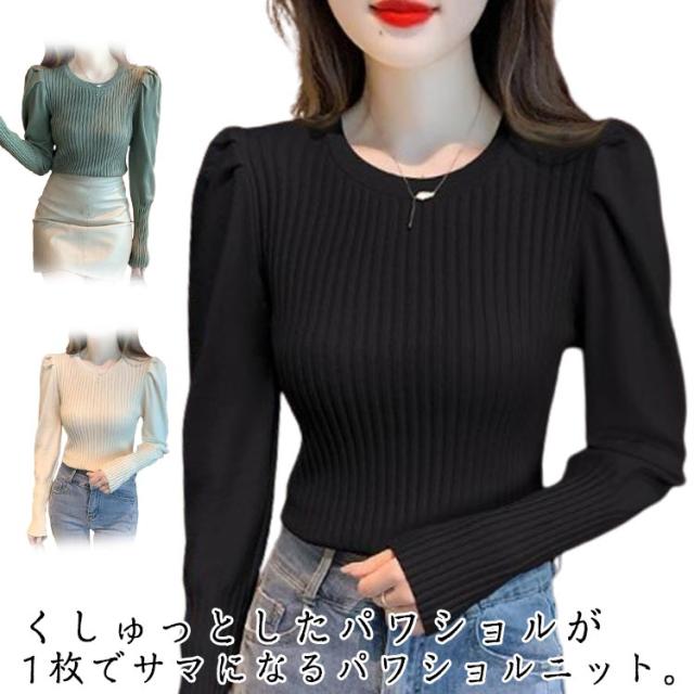 ニット パワショル セーター 春 パワショルニット トップス レディース パワーショルダー 長袖 無地 クルーネック ラウンドネック リブ きれいめ 上品 シンプル セクシー オフィスカジュアル 大人 韓国 秋冬