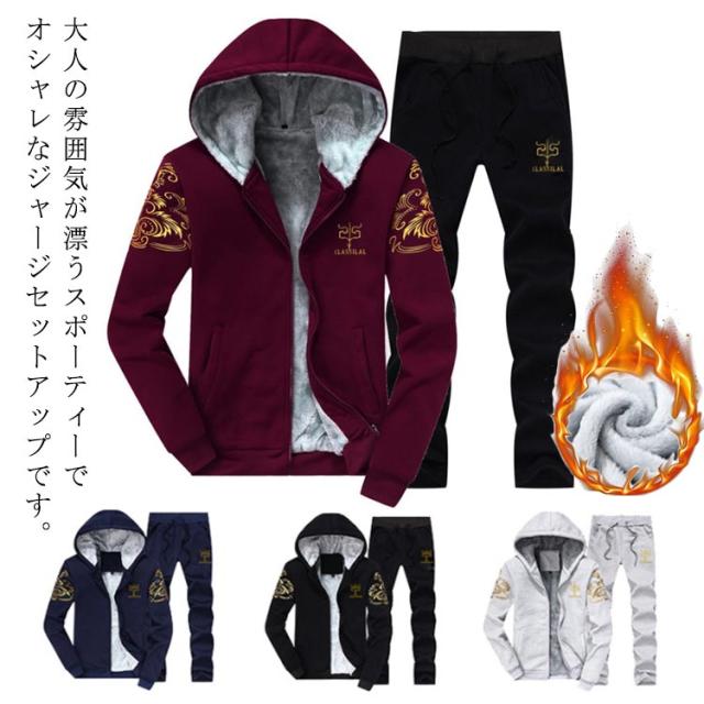 セットアップ ジャージ パーカー おしゃれ スウェット メンズ スエット上下 秋冬 裏起毛 厚手 ジップアップ セットアップ フード付き 上下セット 部屋着 カジュアル 裏ボア