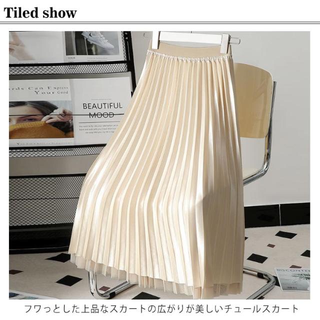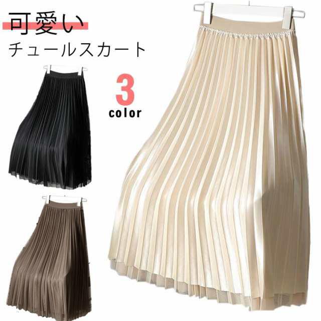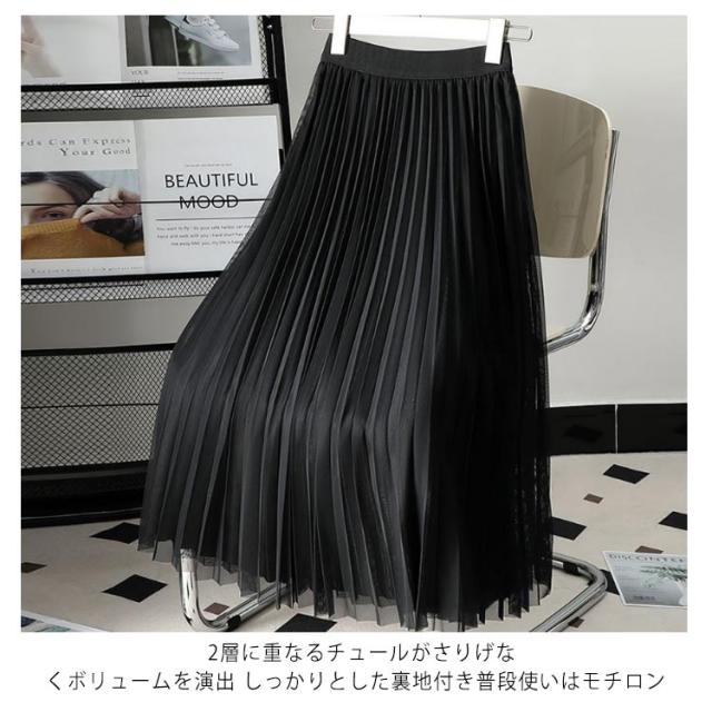 チュールスカート レディース スカート ロング プリーツスカート ロングスカート フレアスカート ボトムス ウエストゴム 春 夏 秋 体型カバー Aライン お洒落 ふんわり ふわふわ 通勤 通学 上品 きれいめ カジュアル 春秋 着回し 大人 可愛い