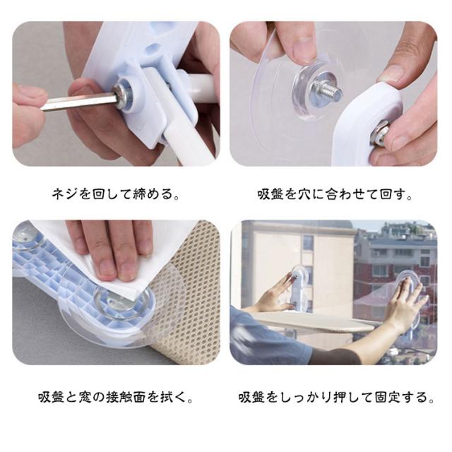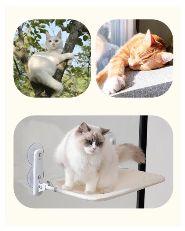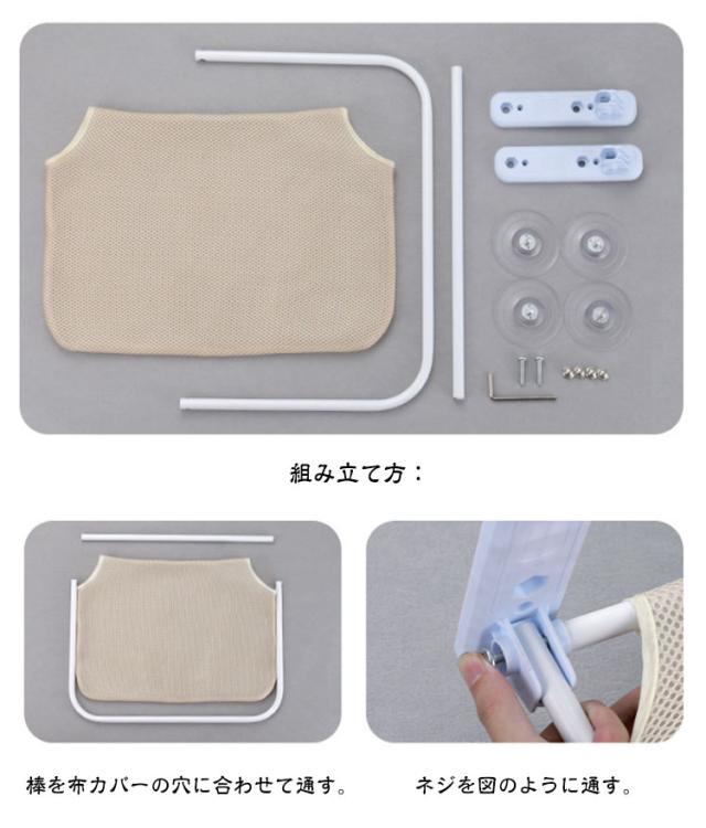 | 【吸盤式猫ハンモック】【折りたたみ】 日光浴、休憩時間、遊びなどにぴったり、猫ちゃんともっと楽しく遊べる! 耐久性に優れた強力な吸盤が4つ付きで、耐荷重最大20KG、安定性に優れ、落ちる心配がなく大きい猫ちゃんも安心に使えます。 不要な時に折りたたむことが出来、窓、カーテンのスペースに邪魔せずに、とても便利! 取り外せるカバー、汚れた時に洗うことが出来て清潔! 組み立て方: 棒を布カバーの穴に合わせて通す。 ネジを図のように通す。 ネジを回して締める。 吸盤を穴に合わせて回す。 吸盤と窓の接触面を拭く。 吸盤をしっかり押して固定する。 | |