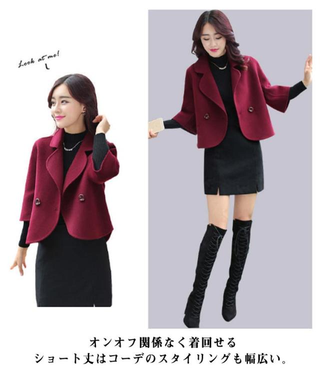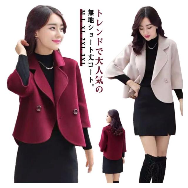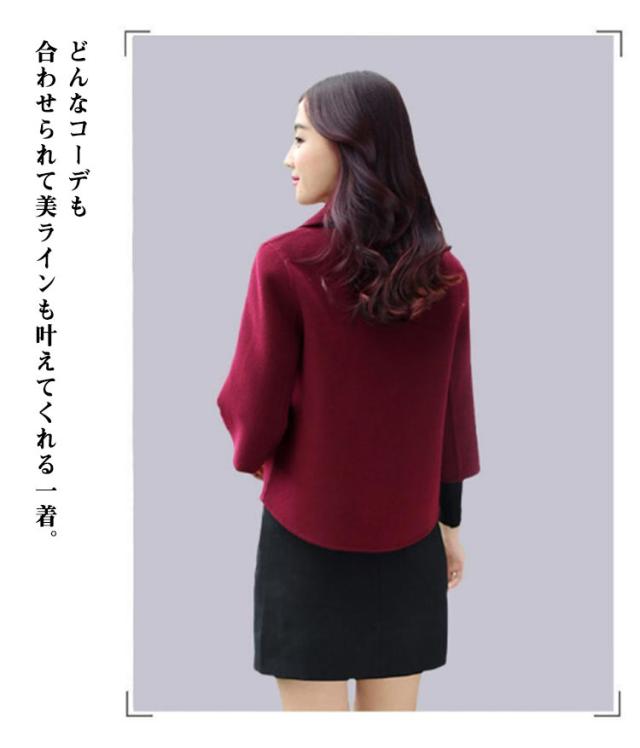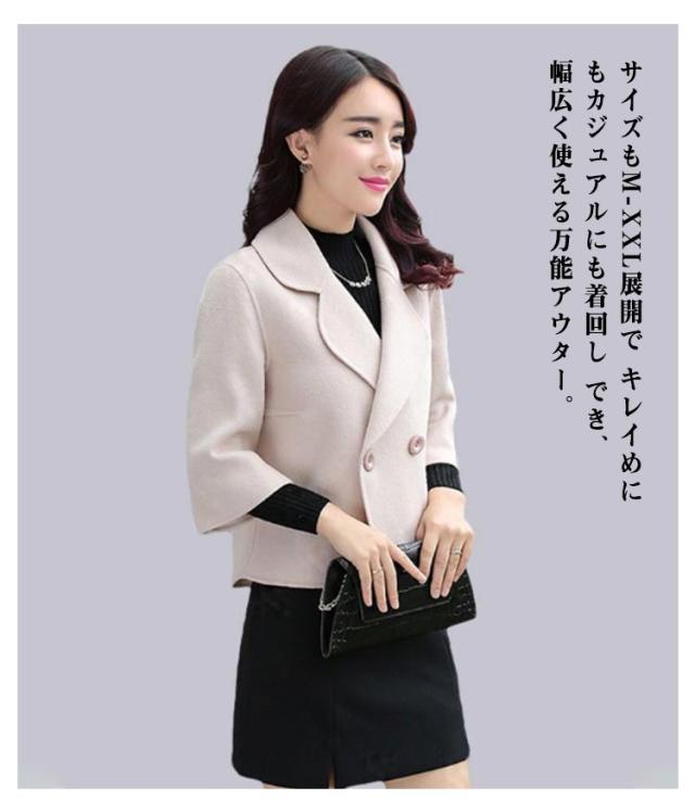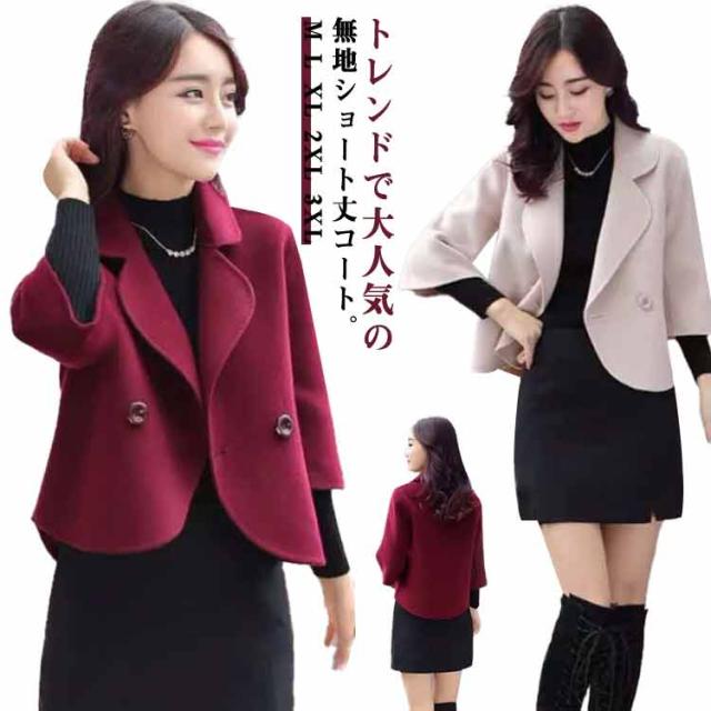 ショート コート レディース 春服 ショート丈 Pコート アウター テーラードジャケット メルトン調 春 秋 七分袖 キレイめ 通勤 30代 40代