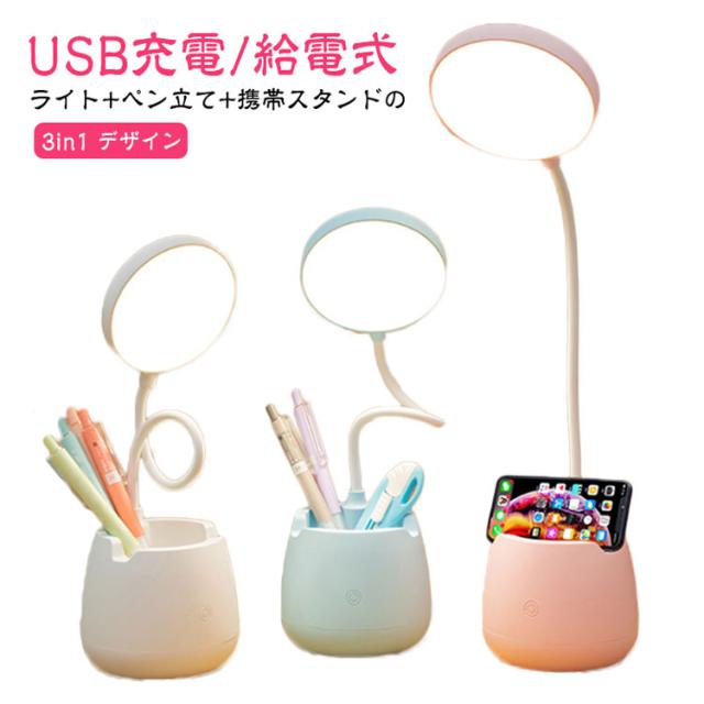 送料無料 ペン立て USB充電/給電式 360度自由回転 学習机 調光式 子供 北欧 おしゃれ 3段階調光 led デスクライト 影ができにくい コードレス スタンドライト 調色 卓上ライト 電気スタンド スタンドライト 学習用