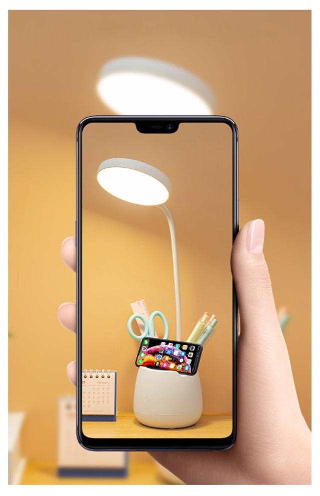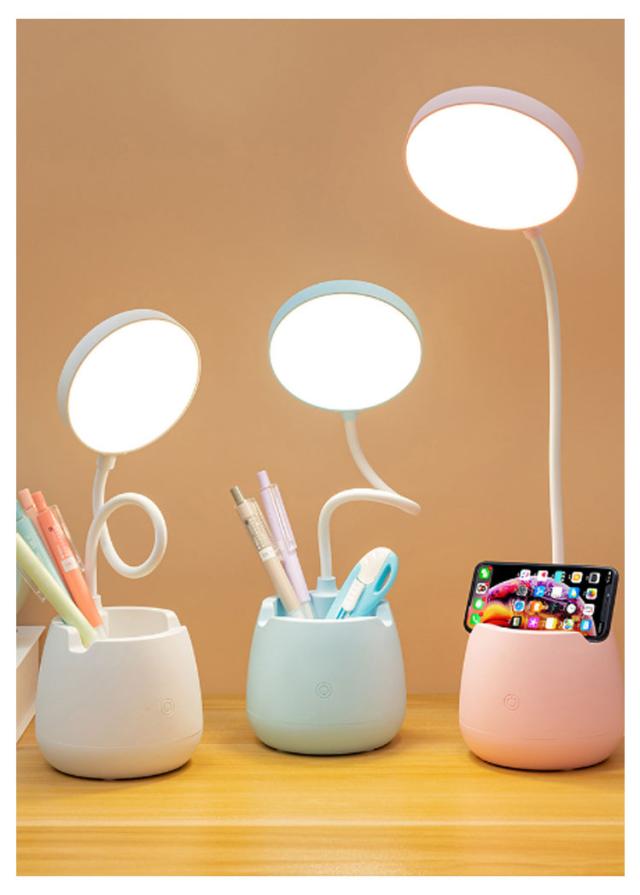 | USB充電/給電式 ライト+ペン立て+携帯スタンドの 3in1 デザイン | |
