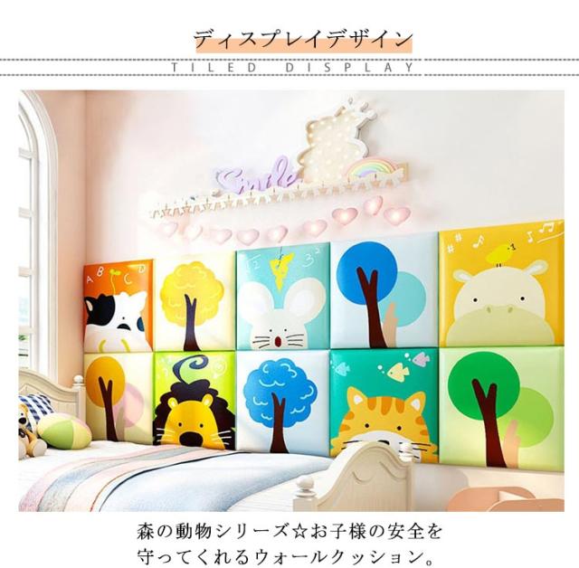 | 【商品名】ウォールクッション 【サイズ】30*30cm 【素材】PU、高密度スポンジ、中密度繊維板、その他 【特徴】 森の動物シリーズ☆お子様の安全を守ってくれるウォールクッション。 柔らかいPUに高密度スポンジ内蔵で弾力性のよいクッション性を持ち、お子様が安全に遊べるスペースを作れます。 表面は高級感のあるPUレザーを採用し、防汚性にも優れ、お手入れも楽々。汚れや足跡がついても、タオルやテッシュで軽く拭き取ることができます。 弾力性の高いスポンジでできており、クッション性に優れて、お子様がぶつかった時の衝撃を和らげます。 工具不要で取り付けはとっても簡単!背面シールをはがして、壁にしっかり押して取り付けます。壁に直接貼りたくない場合は、マスキングテープや養生テープを壁に貼り、その上から両面テープで貼り付けてください。 子供部屋だけではなく、ペットルーム、リビングルーム、保育園、幼稚園の遊び場など様々な場所で使用できます。 保護クッションとしても、壁飾りとしても◎ | |