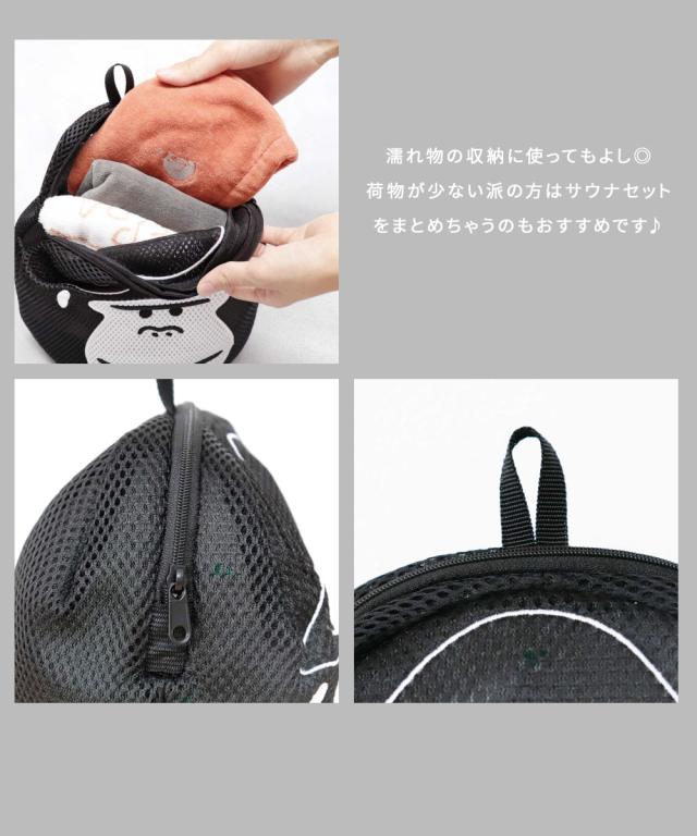 洗濯ネット ポーチ ランドリーネット 温泉 銭湯 サウナ ポーチ スパバッグ そのまま洗濯 メッシュ マチ付き 洗える 洗濯用品 キャラクター 小さめ 収納 かわいい プレゼント 旅行 ジム ポーチ 持ち運び ごリラックス ブラック グレー