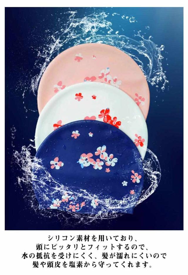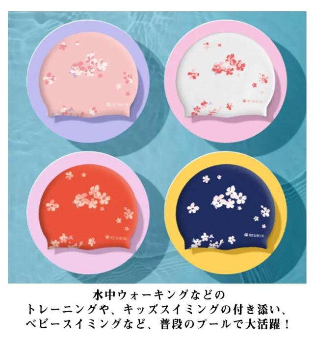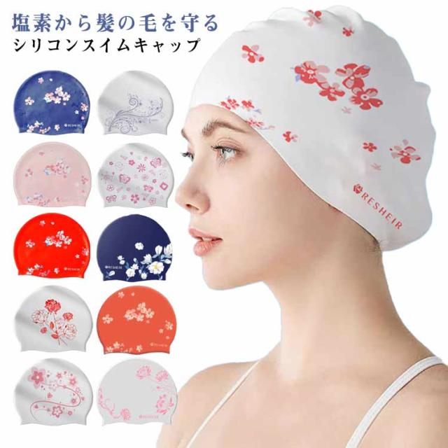 | 塩素から髪の毛を守るシリコンスイムキャップ 伸縮性抜群なので、髪の毛が長い方でも、まとめて帽子にスマートに収まります。 シリコン素材を用いており、頭にピッタリとフィットするので、水の抵抗を受けにくく、髪が濡れにくいので髪や頭皮を塩素から守ってくれます。 女性らしい美しい花柄を設計して、スイム時間を彩りします。 水中ウォーキングなどのトレーニングや、キッズスイミングの付き添い、ベビースイミングなど、普段のプールで大活躍! | |