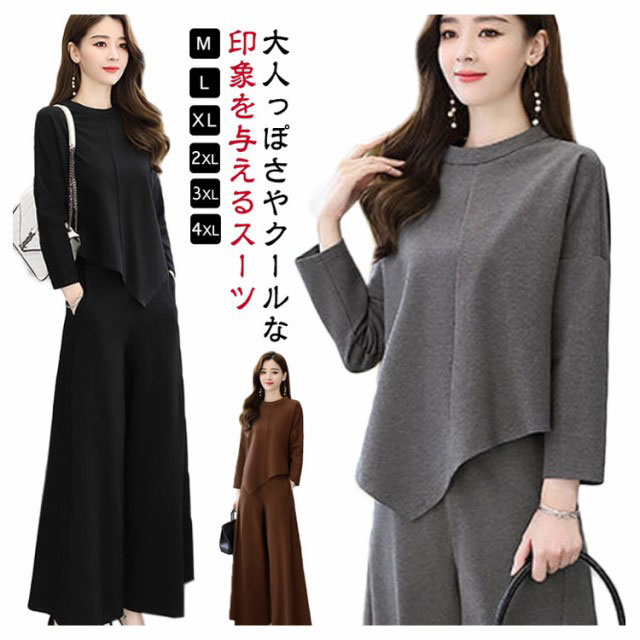 セットアップ レディース 上下セット パンツスーツ 入学式 卒業式 卒園式 入園式 ママ お宮参り 2点セット フォーマル 母親 結婚式 フォーマル セレモニー 大きいサイズ カジュアル 体型カバー 大きいサイズ おしゃれ 春 秋 長袖 着?せ 送料無料 無地
