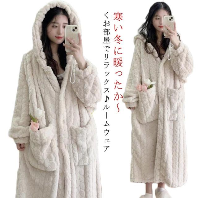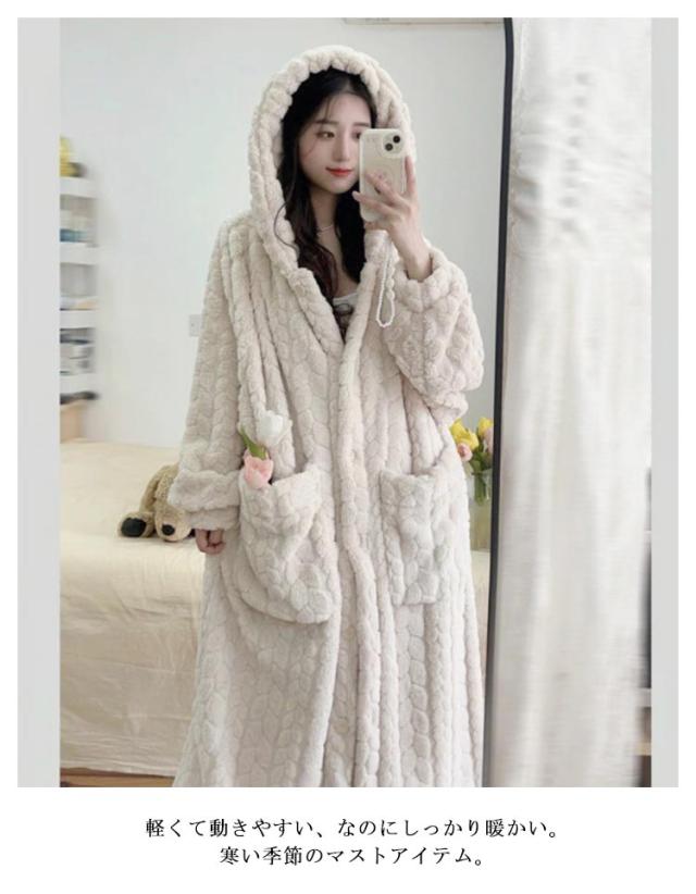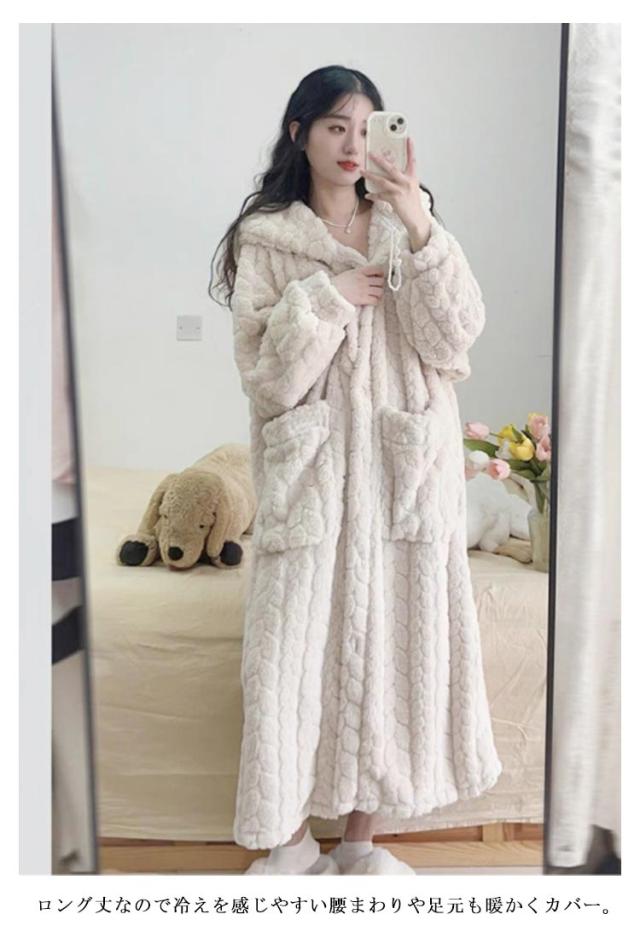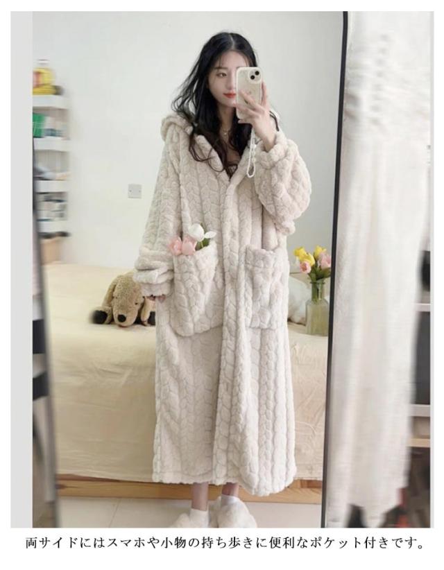 パジャマ 冬用 着る毛布 もこもこ 春 ふわふわ ルームウェア かわいい レディース 長袖 前開き 着るブランケット 可愛い 裏起毛 フランネル 送料無料 ロング丈 秋 冬 送料無料 洗える ワンピース ナイトウェア ポケット付き フード付き おしゃれ あったかグッズ