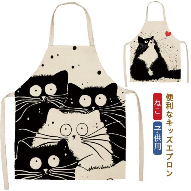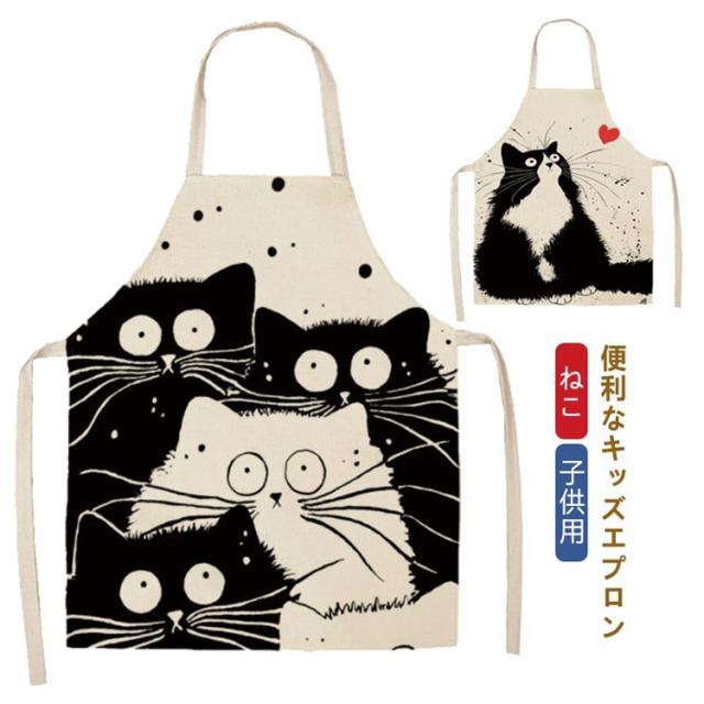 キッズエプロン こどもエプロン 子供用 エプロン 子供エプロン ねこ 幼児 小学生 かわいいト おしゃれ ギフト プレゼント かわいい 猫 ネコ 調理実習 クッキング 保育園 幼稚園 小学校 入学準備 男の子 女の子