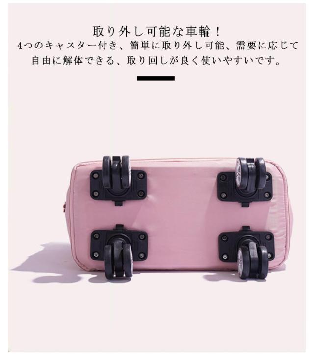 | オールシーズンで使えるなボストンバッグです。 拡張機能!サイズを3段階に拡張でき、荷物が増えても収納に困りません。短期の旅行や出張、ジム用のスポーツバッグにもおすすめ。 耐久性が高く、撥水効果のある生地を採用しているので急な雨でも安心。 メイン収納の他に、防水ポケット、小物を入れるポケットがあり、荷物を分けて収納できます。どこに何を収納しているか迷うことがありません。 キャリーケースに乗せた時にもしっかり固定することができ、移動している時もスーツケースからズレ落ちる心配がない。 取り外し可能な車輪!4つのキャスター付き、簡単に取り外し可能、需要に応じて自由に解体できる、取り回しが良く使いやすいです。 手持ち、肩掛け、キャリーオンバッグとして3wayで使えます。スポーツ、アウトドア、旅行などの用途から普段使いまで、あらゆる場面でご使用いただけます。 | |