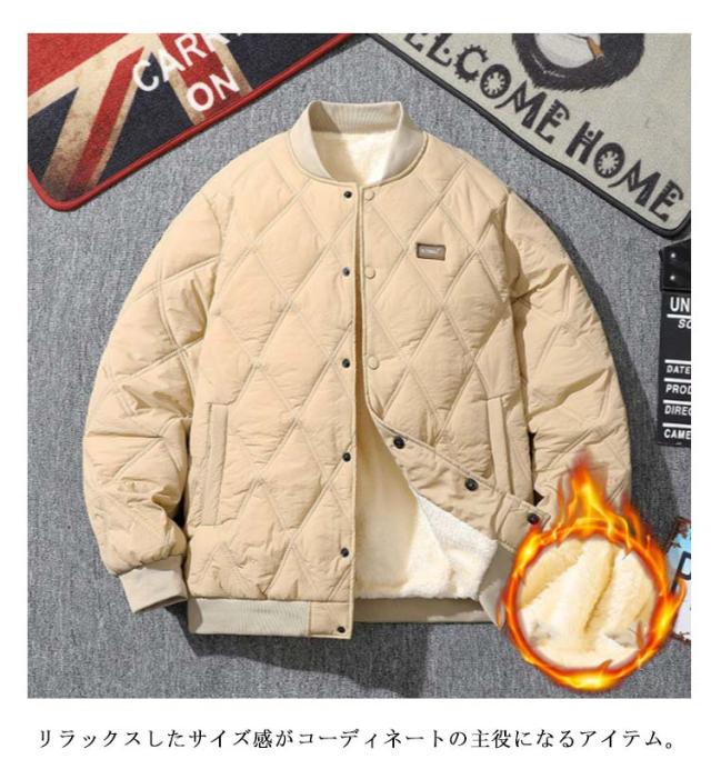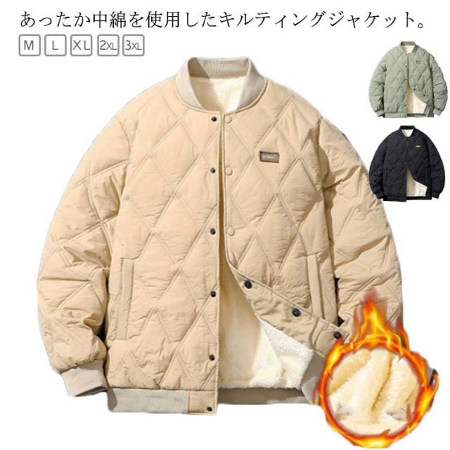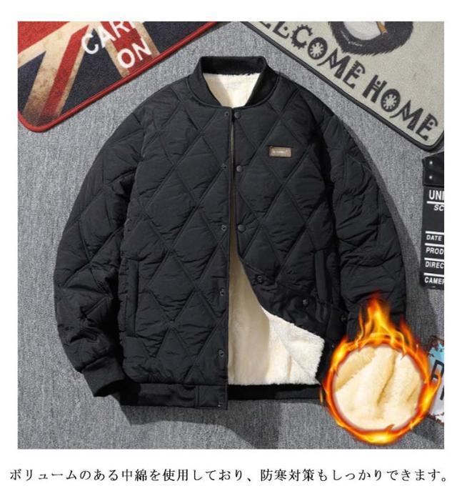 ブルゾン ショート丈 中綿ジャケット ゆったり ダウン風 スタジャン 裏起毛 スタジャン キルティングコート ジャケット 大きいサイズ メンズ 中綿コート 裏起毛んし 無地 スタジアムジャンパー 長袖 ジャンパー アウター 秋冬 防寒 防風