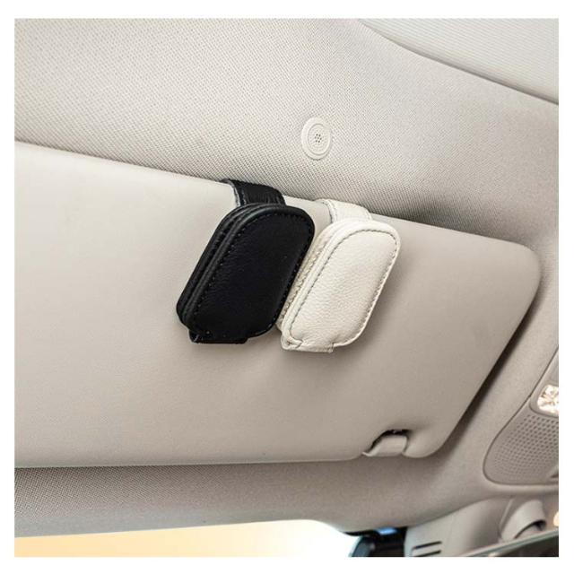 車 メガネホルダー サングラスホルダー クリップ型 マグネット 選べる10色! カードホルダー 車載 車用 収納 サンバイザー メガネクリップ メガネ ホルダー サングラス レザー コンパクト ケース 収納 軽量 カード 通行券 お洒落 サングラスホルダー