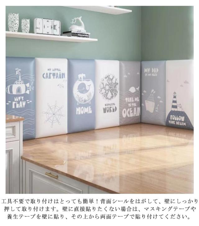 | 【商品名】ウォールクッション 【サイズ】20*40cm、厚さ3cm 【素材】PU、高密度スポンジ、中密度繊維板、その他 【特徴】 オーシャンシリーズ☆お子様の安全を守ってくれるウォールクッション。 柔らかいPUに高密度スポンジ内蔵で弾力性のよいクッション性を持ち、お子様が安全に遊べるスペースを作れます。 表面は高級感のあるPUレザーを採用し、防汚性にも優れ、お手入れも楽々。汚れや足跡がついても、タオルやテッシュで軽く拭き取ることができます。 弾力性の高いスポンジでできており、クッション性に優れて、お子様がぶつかった時の衝撃を和らげます。 工具不要で取り付けはとっても簡単!背面シールをはがして、壁にしっかり押して取り付けます。壁に直接貼りたくない場合は、マスキングテープや養生テープを壁に貼り、その上から両面テープで貼り付けてください。 子供部屋だけではなく、ペットルーム、リビングルーム、保育園、幼稚園の遊び場など様々な場所で使用できます。 保護クッションとしても、壁飾りとしても◎ | |