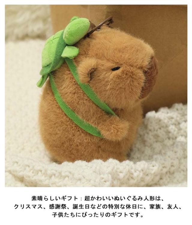 送料無料 キーホルダー カピバラ ぬいぐるみ キーチェーン カピバラさん もこもこ ボールチェーン かわいい 癒し 11cm 22cm 帽子 カバン ベル 付き お誕生日 プレゼント 動物 インテリア 店飾り イチゴ柄帽子
