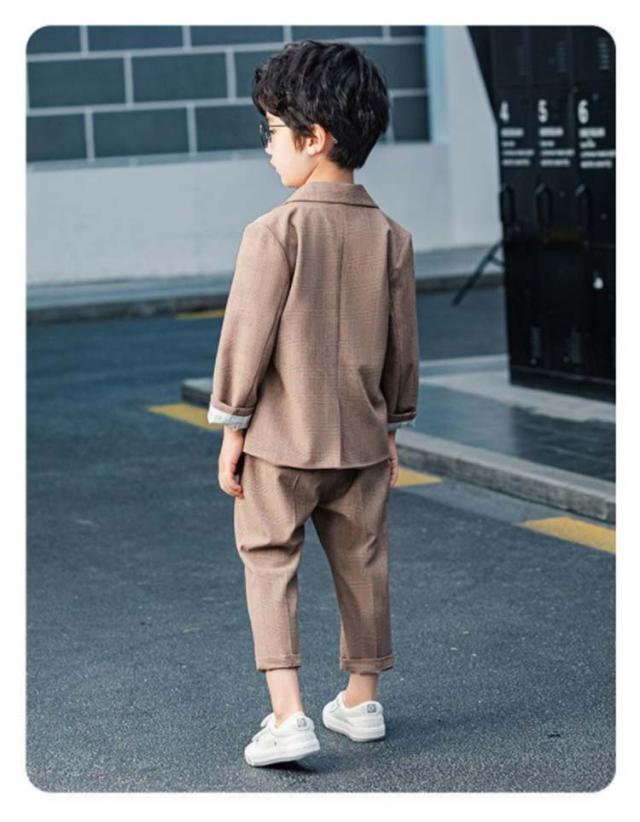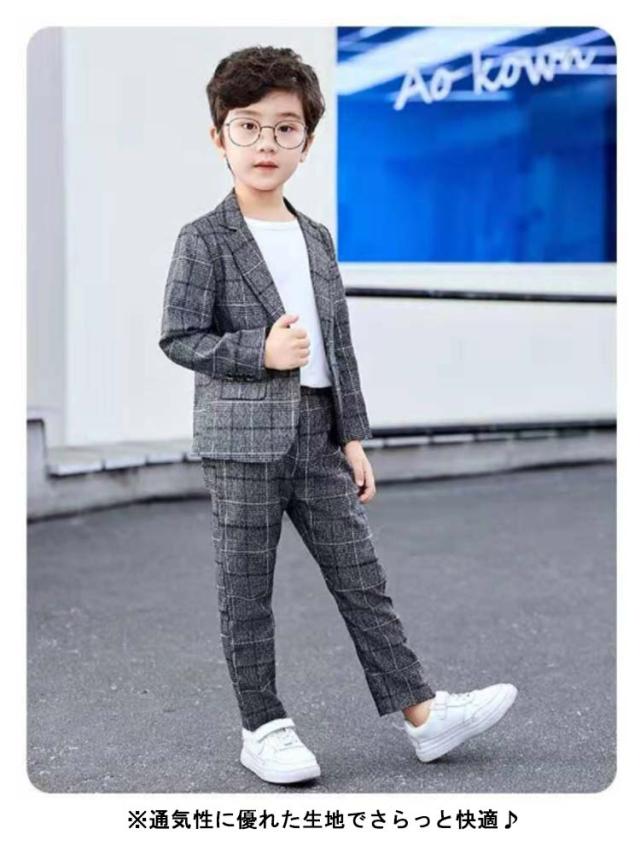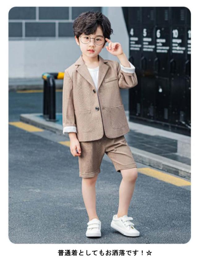送料無料 卒業式 入学式 スーツ 男の子 ロングパンツ 半ズボン ジュニア 大きいサイズ 卒園式 子供服 小学生 セットアップ ハーフパンツ フォーマル チェック柄 長袖 2点セット ジャケット ブラウン 春 秋 おしゃれ 無地 発表会 結婚式 90 100 110 120 130 140 150 160 170