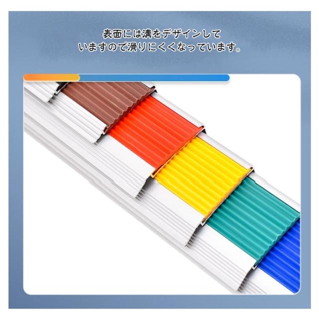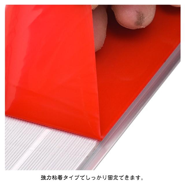 | 防水仕様だから屋外での使用も安心です。 階段の角に合わせて貼るだけ、とても簡単! 表面には溝をデザインしていますので滑りにくくなっています。 強力粘着タイプでしっかり固定できます。 ハサミで簡単にカットできるので階段の長さにあわせて自由にカスタマイズできます。 | |