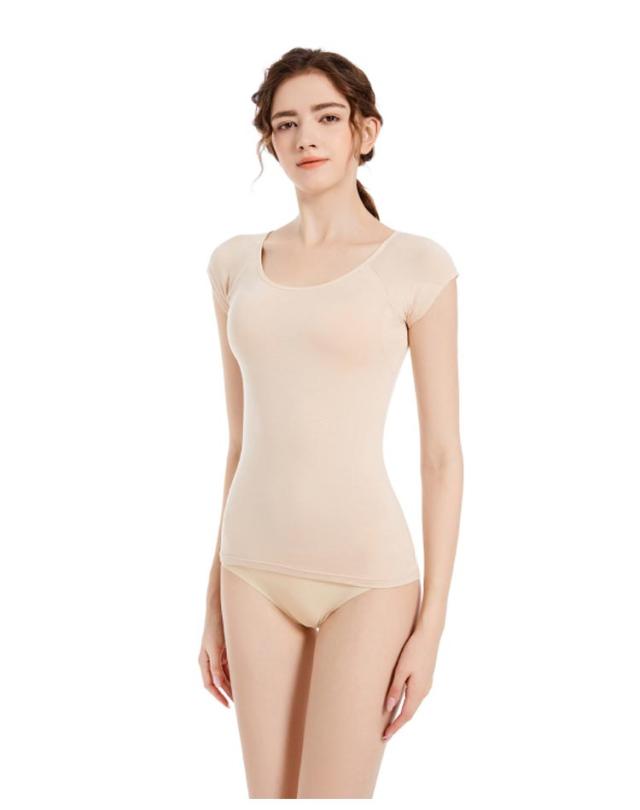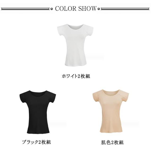 汗取りインナー Tシャツ レディース フレンチスリーブ 女性 インナー 肌着 インナーシャツ 汗取りパッド付き 脇汗防止 大汗 クルーネック 丸首 吸汗速乾 防臭 柔らかい 春夏 汗染み 防止 汗 対策 ワキ汗対策