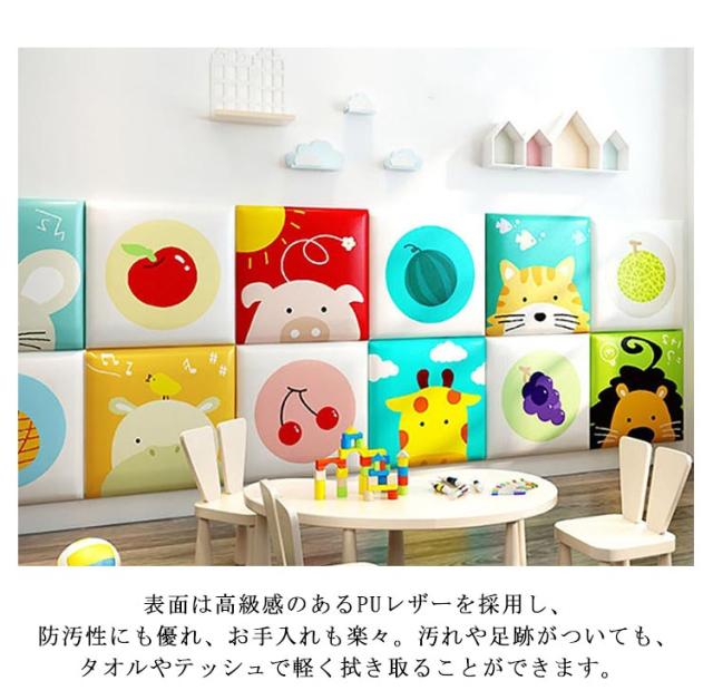 30*30cm 壁クッション ベビーガード 子供部屋 10枚 ケガ防止 コーナークッション 四角形 保護クッション 正方形 ウォールクッション 動物 アニマル 衝撃吸収 プレイルーム ベビー 防音 ウォールマット クッション 10枚 遊び場 壁飾り 幼稚園 保育園