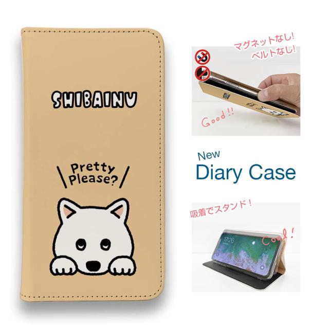 スマホケース 手帳型 ベルトなし マグネットなし iPhone17 Pro Max iPhone Air iPhone16e Pro Max 16 Plus 15 Pro Max 14 Plus Xperia 10 VII Galaxy AQUOS Pixel10 Pro XL 犬 雑貨 柴犬のおねだり顔_白柴 (wakat)