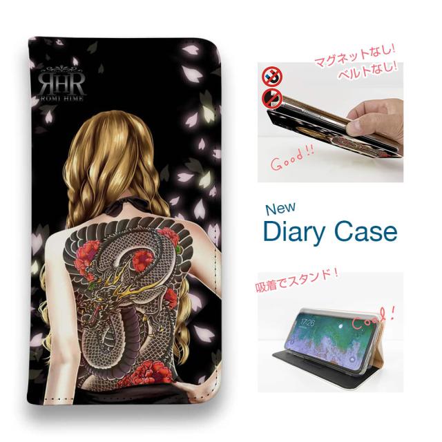 スマホケース 手帳型 ベルトなし iPhone17 Pro Max iPhone Air iPhone16e Pro Max 16 Plus 15 Pro Max 14 Plus Xperia 10 VII Galaxy AQUOS Pixel10 Pro XL ROMI HIME 彫青 牡丹 和柄 桜 女