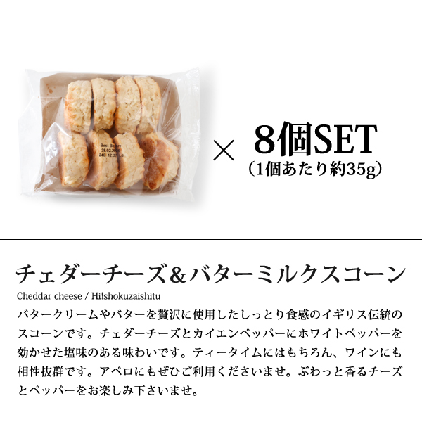 本場英国式 冷凍スコーン チェダーチーズ 約35g×8個セット 冷凍のみ スイーツ カフェ ティータイム おやつ 朝食 冷凍パン 冷凍スコーン