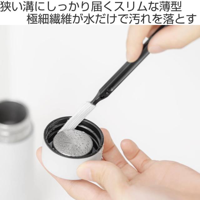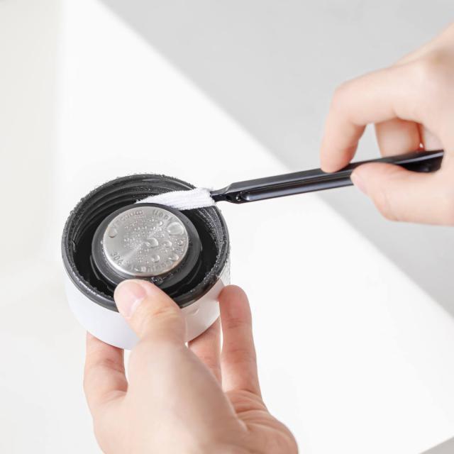 ステンレスボトルなどの中栓洗いに役立つスティック型です。スリムで薄型なので、ブラシやスポンジが入らない狭い溝にもしっかり届きます。