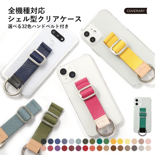 32色から選べる本革ハンドベルト付きクリアハードケース