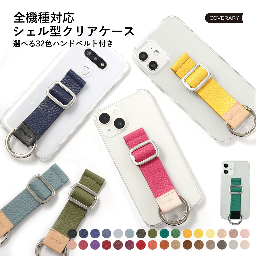 ■32色から選べる本革ハンドベルト付きクリアハードケース。