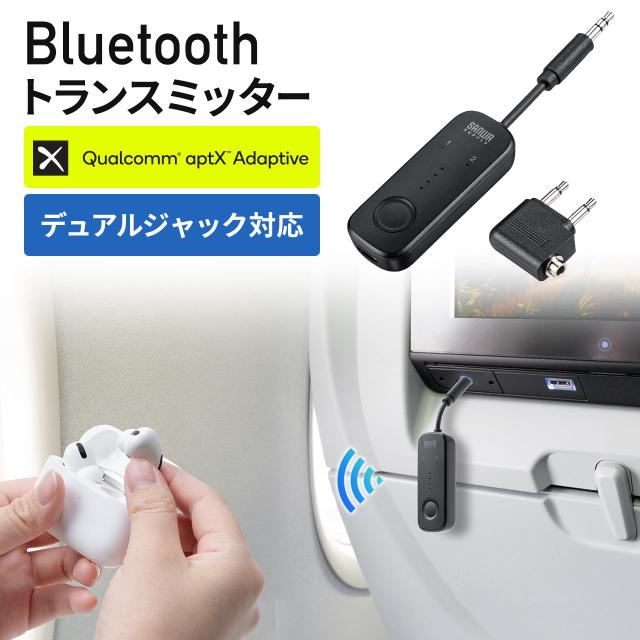 Bluetoothトランスミッター バッテリー内蔵 aptX adaptive対応 3.5mmプラグ 送信機 超小型 飛行機 出張 2台同時接続 高音質 低遅延 オーディオ[400-BTAD013]