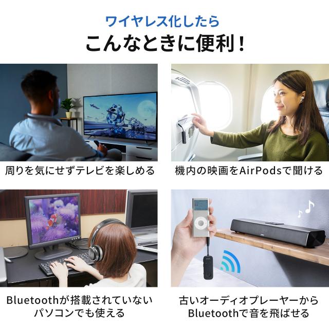 ●テレビや古いオーディオプレーヤーなどのBluetooth非対応の機器をお手軽に無線化することができます。