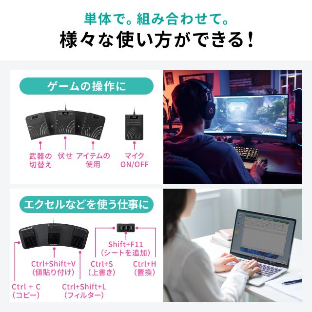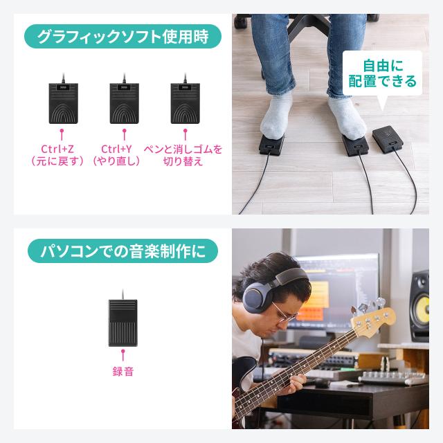●足でパソコンを操作することができる有線式USBフットペダルです。●専用ソフトでショートカットなどの機能を割り当てることができるプログラマブル仕様です。