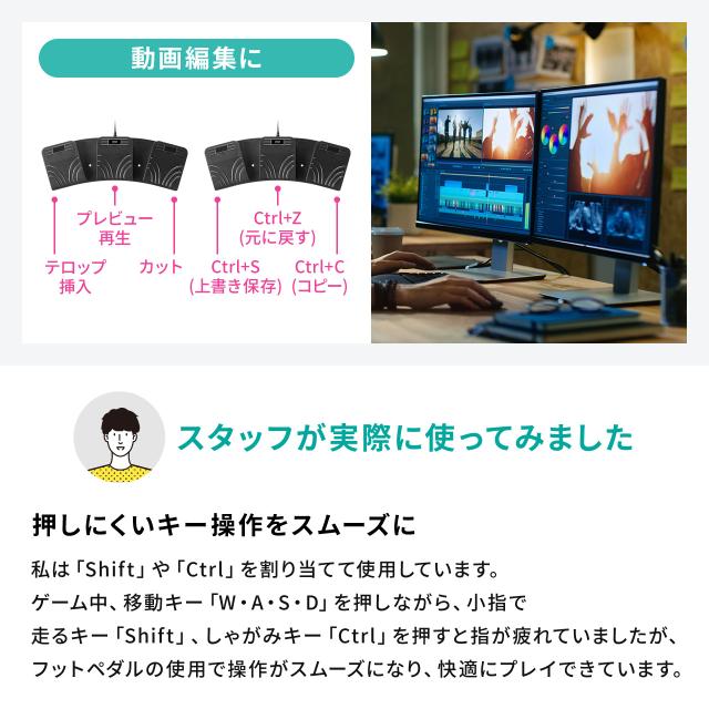 ⇒ご購入の前にご確認下さい足でパソコンを操作することができる有線式USBフットペダル。専用ソフトでショートカットなどを割り当てられるプログラマブル仕様。キーボードを操作する指が足りなくなるゲームやグラフィックソフトの使用時に便利。【WEB限定商品】