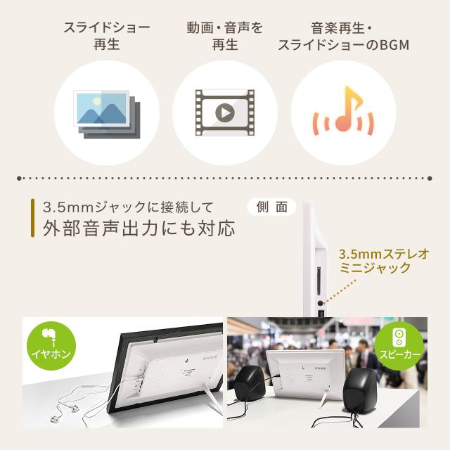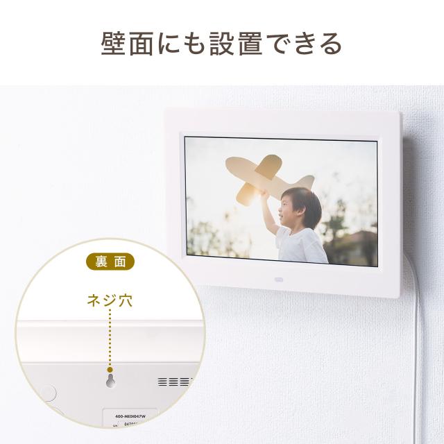 デジタルフォトフレーム 10.1インチ 1024×600画素 SD/USB 写真/動画/音楽 リモコン付き ホワイト スライドショー リピート再生 記念日 プレゼント[400-MEDI047W]