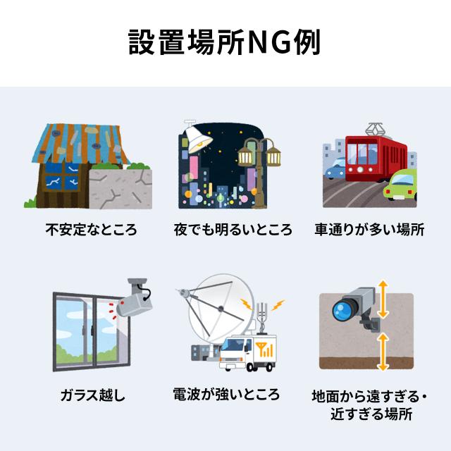 ※設置前にソーラーパネルが直接太陽光に当たる場所においてフル充電してください。