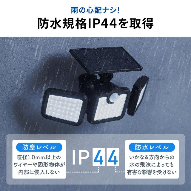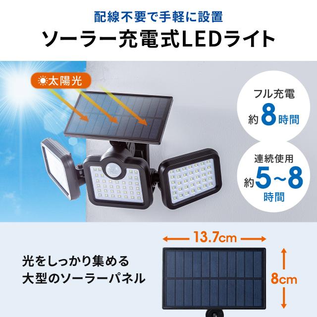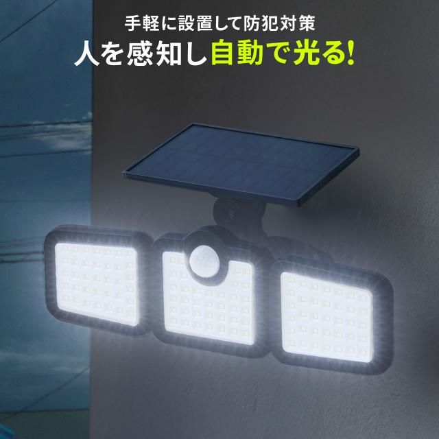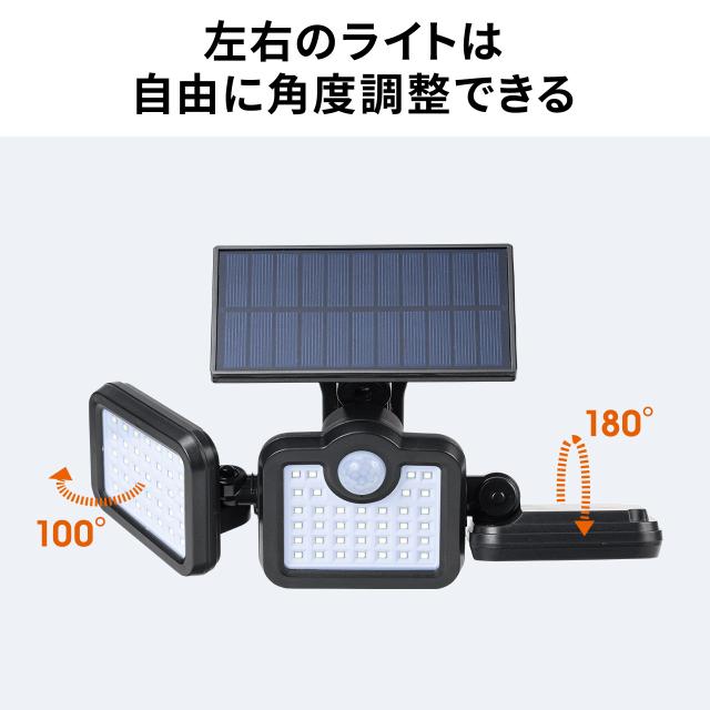 ソーラーライト 屋外 人感センサー 防犯 最大480ルーメン ソーラー充電 防水規格IP44[800-LED071]