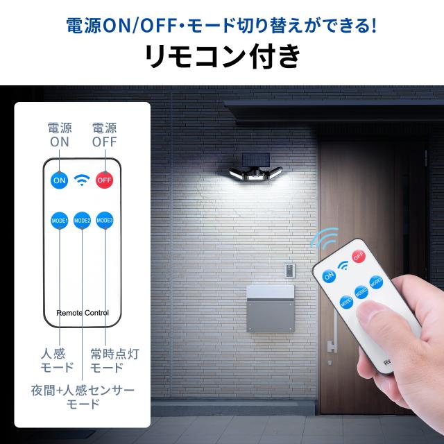 ⇒ご購入の前にご確認下さいソーラー充電式の屋外用人感センサーLEDライト。最大480ルーメン。センサー式で防犯対策に最適。リモコン付き。防水規格IP44取得。【WEB限定商品】