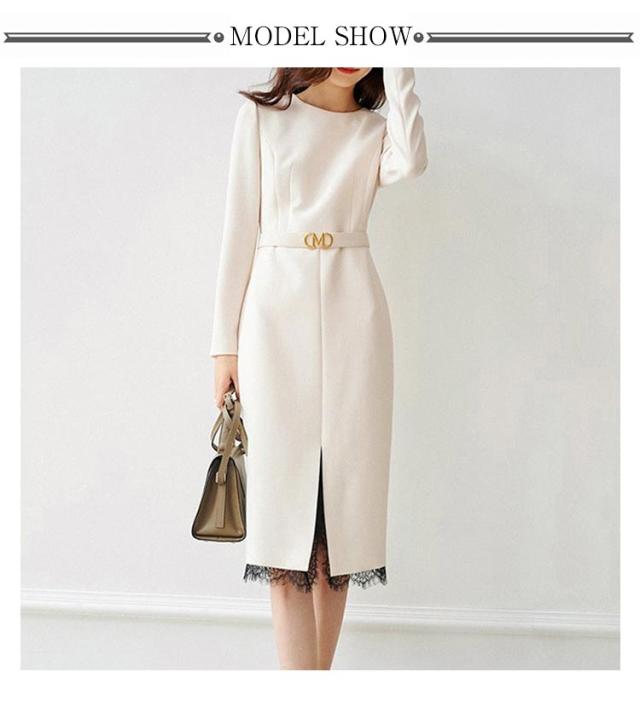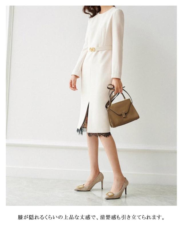 ワンピーススーツ レディース 入学式 ママスーツ フォーマルスーツ 卒業式 卒園式 入園式 結婚式 長袖 裾レース 切り替え スリット入り 体型カバー 学校 お宮参り 七五三 大人 上品 エレガント フォーマル 通勤 ビジネス 春 秋 冬
