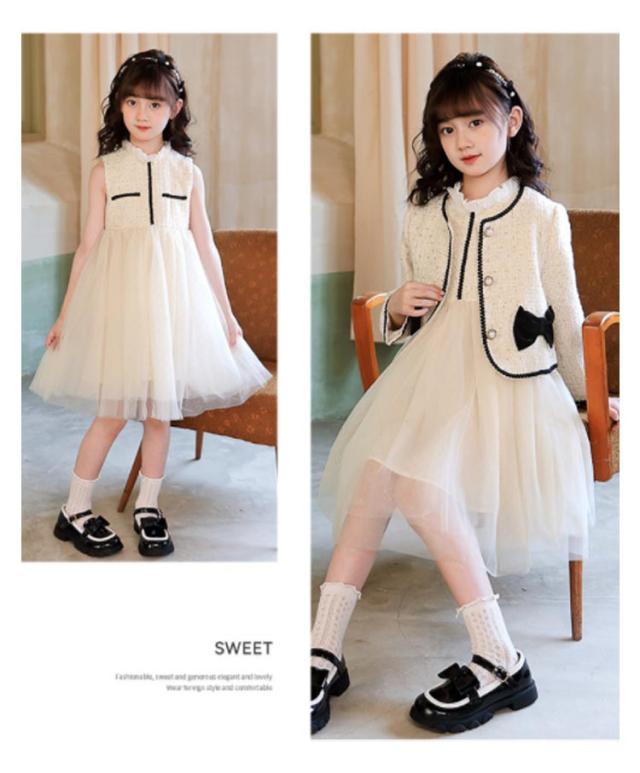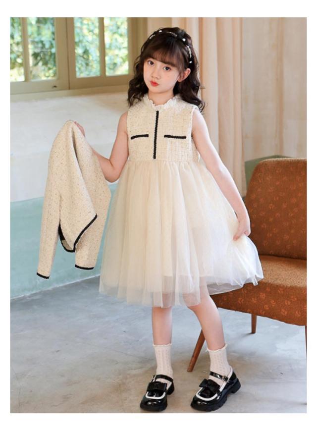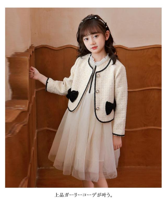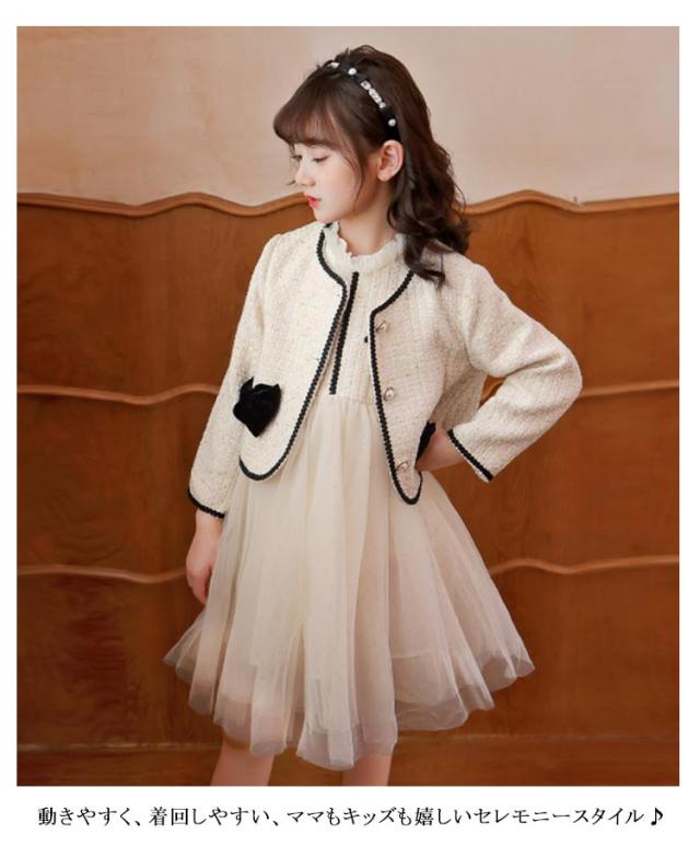 入学式 スーツ 女の子 卒園式 セットアップ スーツ ツイードジャケット ノースリーブ ワンピース チュール ノーカラー 異素材 切り替え 入園式 ボレロ ドレス キッズ フォーマル 子供スーツ 結婚式 七五三 発表会 ドレス 春 秋