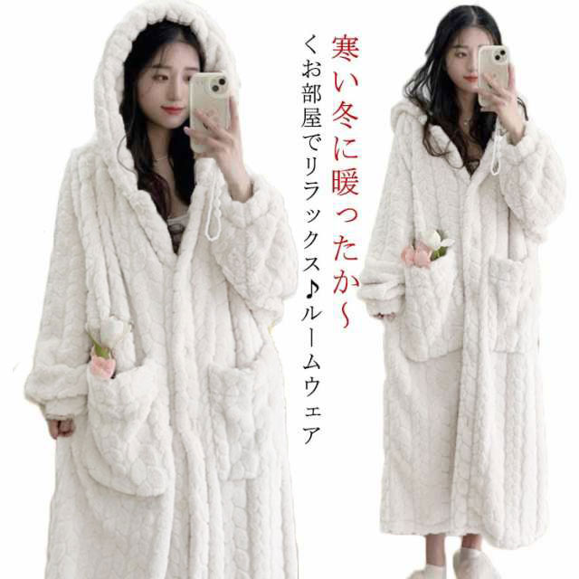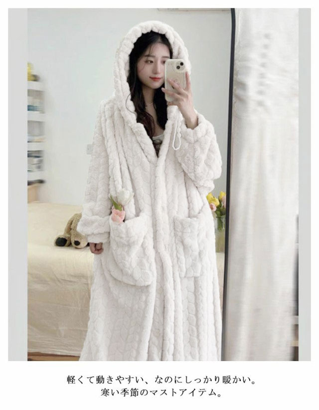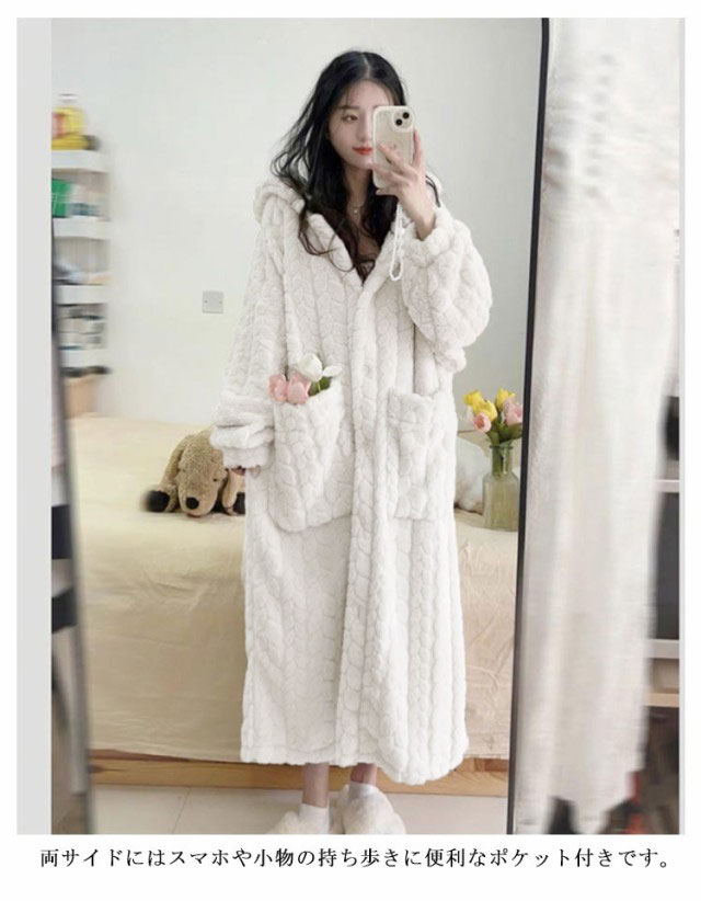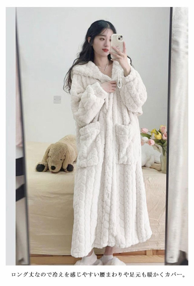 送料無料 着る毛布 レディース もこもこ 部屋着 かわいい ルームウェア 冬用 パジャマ 長袖 着るブランケット 前開き 可愛い 裏起毛 フランネル ふわふわ 春 秋 冬 洗える ロング丈 ワンピース ナイトウェア ポケット付き フード付き おしゃれ あったかグッズ 暖かい