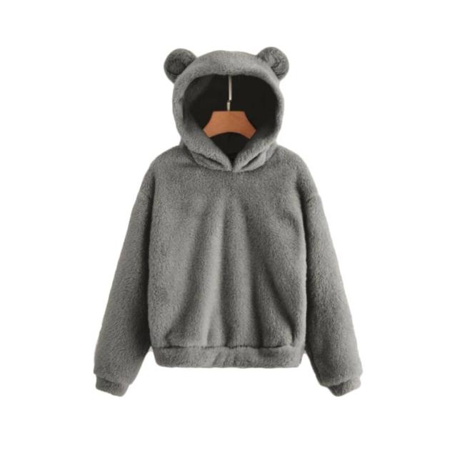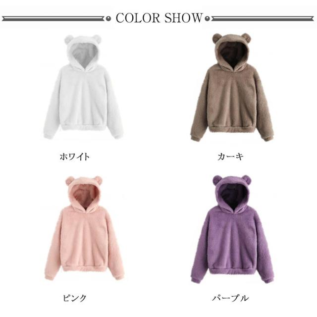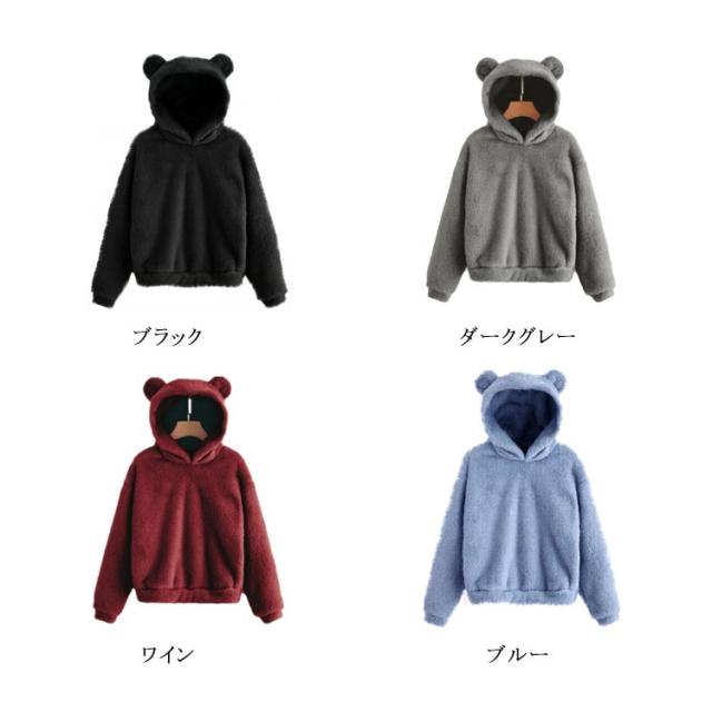 ファーブルゾン ファーコート レディース ショート丈 エコファー フェイクファー ファージャケット ボア ジャケット クマ耳付き フード付き ショートコート ブルゾン アウター 長袖 厚手 秋冬 防寒 暖かい ふわふわ もこもこ 無地 上着 羽織り 前開き カジュアル かわいい