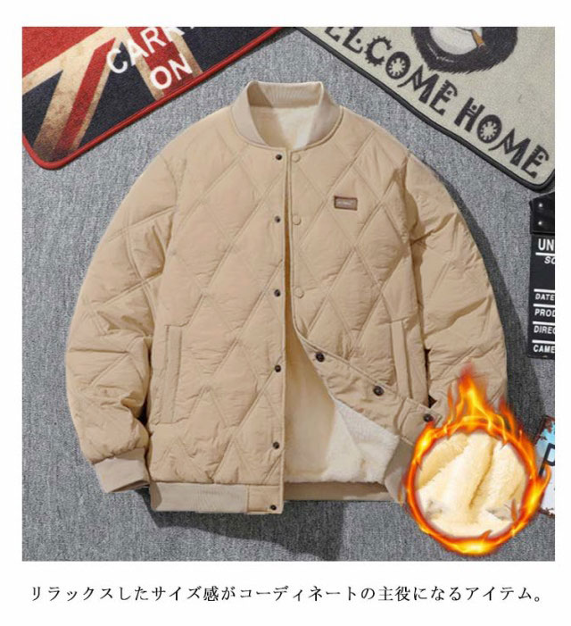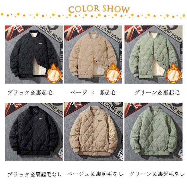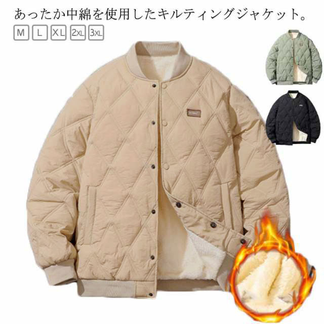 スタジャン 中綿ジャケット キルティングジャケット メンズ ショート丈 ダウン風 裏起毛 裏起毛んし ゆったり ジャケット キルティングコート 大きいサイズ 中綿コート ブルゾン 無地 スタジアムジャンパー 長袖 ジャンパー アウター 秋冬 防寒 防風 送料無料