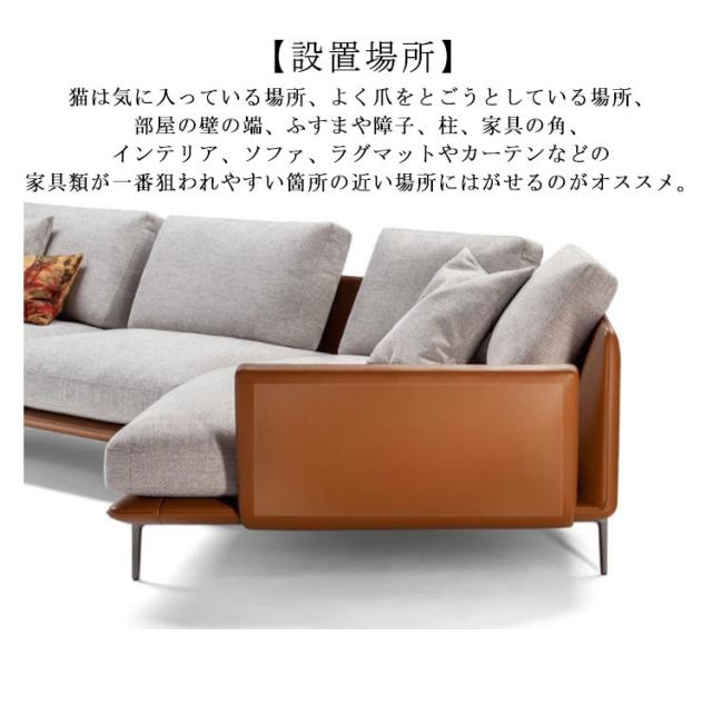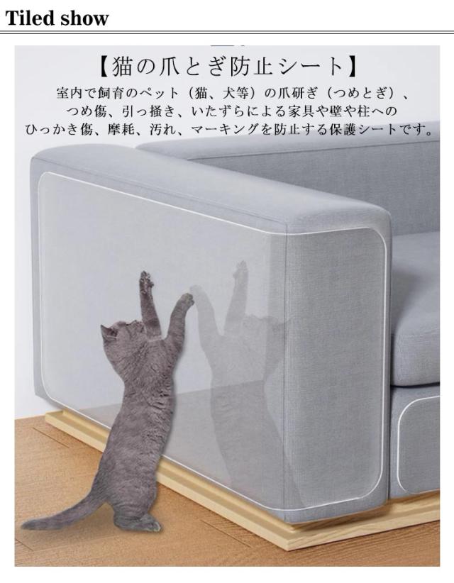 | 40×110cm 45×100cm(3枚セット)【素材ビニール製】柔軟性のあるPVC製なので、表面についた汚れてもすぐに拭き取れて、水洗いも可能で、いつでも清潔にご利用いただけます。ソファー、ドア、ベッド、椅子の脚、壁など様々の場所に簡単に取付けられます。 【猫の爪とぎ防止シート】 室内で飼育のペット(猫、犬等)の爪研ぎ(つめとぎ)、つめ傷、引っ掻き、いたずらによる家具や壁や柱へのひっかき傷、摩耗、汚れ、マーキングを防止する保護シートです。 【設置場所】猫は気に入っている場所、よく爪をとごうとしている場所、部屋の壁の端、ふすまや障子、柱、家具の角、インテリア、ソファ、ラグマットやカーテンなどの家具類が一番狙われやすい箇所の近い場所にはがせるのがオススメ。 【自由に裁断可能】サイズに合わせて自由にカットして使います。賃貸物件など使用後はきれいな状態に戻したいという人にもおすすめです。 | |