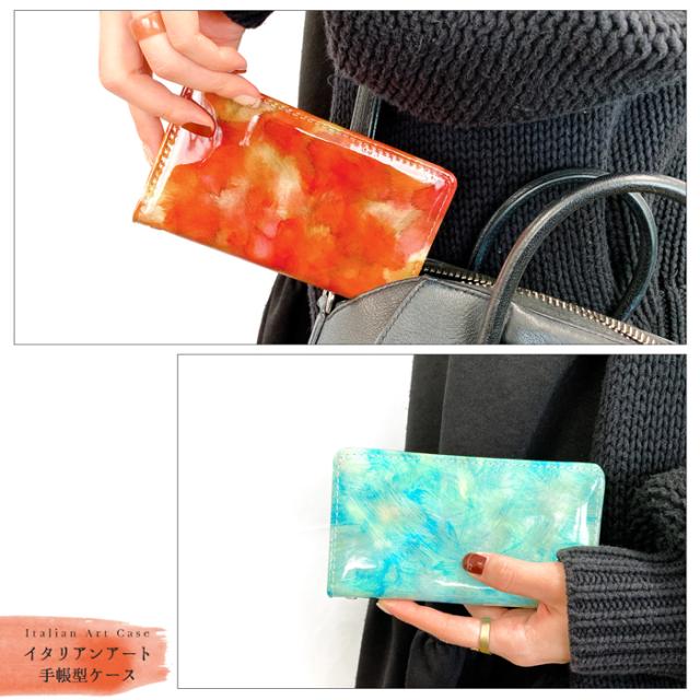 本革 イタリアンアート 手帳型ケース(内側:黒TPU ケース)