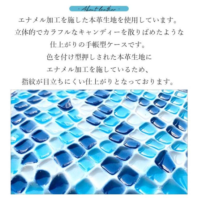 カラフルなキャンディーを散りばめたような、可愛らしい手帳型ケースに仕上げました。