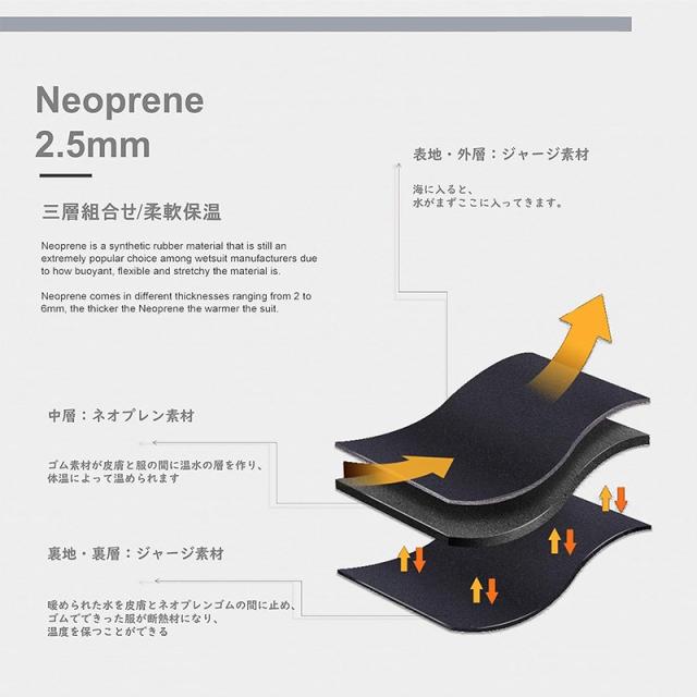 【快適な着心地】2.5mmの厚さで伸縮性と柔軟性を兼ね備え、バッグジッパーのデザインで脱着便利の上、自由な動きを妨げず、思う存分マリンスポーツを楽しめます。遠くからでも識別しやすい鮮やかな色コーデで、安心に水遊びを楽しんでいただくことができます。