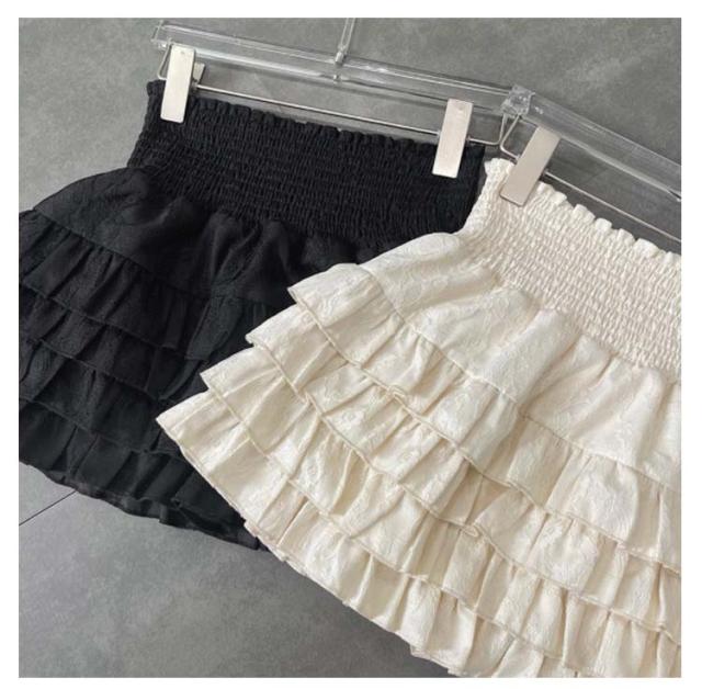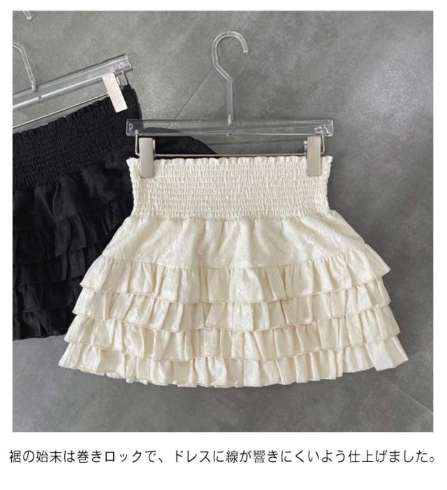 送料無料 ペチコートスカート ダブルフリルパニエ ペチコート ショート丈スカート ハイウェスト ボリューム 下着 七五三 レディース 結婚式 お祝い 透け防止 黒 白 かわいい フリル スカート 透けない フリフリギャザー インナースカート