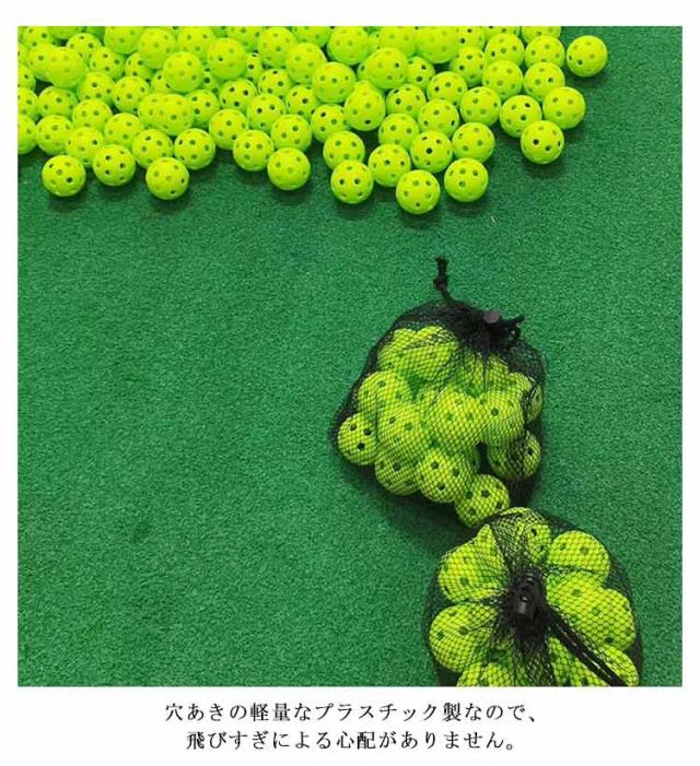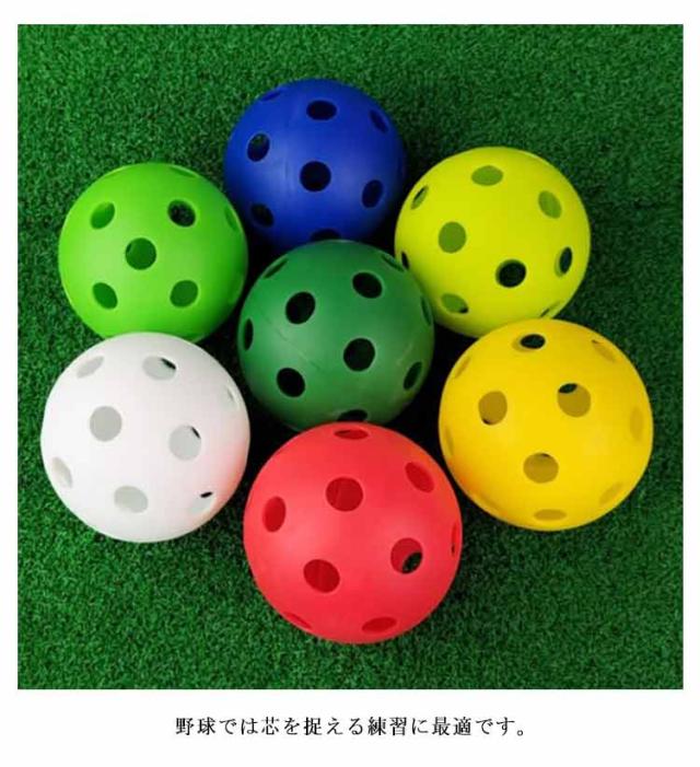 | 100個セット!練習用のゴルフボール 穴あきの軽量なプラスチック製なので、飛びすぎによる心配がありません。 色は視認性が高い彩色です。ショット後の弾道、軌跡を確認しやすくなっています。室内、お庭、河川敷、公園等でのスイングの練習に良い品です。 しっかりした打球音。ボールのスピンにより球筋が協調される穴あき構造。 野球では芯を捉える練習に最適です。 お得な100個セットなので練習中の紛失や破損も気にせず打ち込めます。 室内外問わず使用でき、ゴルフのスイング練習だけでなく、お子様のおもちゃとしてもお使い頂けます。 | |